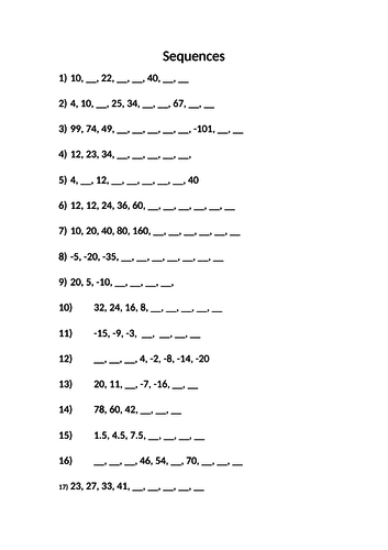 Sequence math worksheets pdf